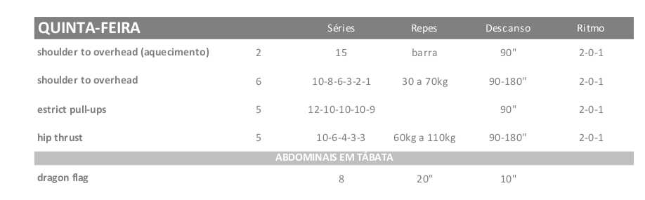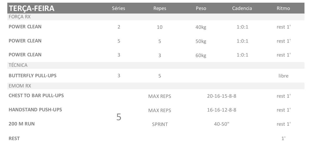 Continuamos com os 2 dias de crosffit, 1 dia de básicos e 1 dia de fullbody.