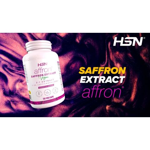 Saffron extract (affron®). 3 times more concentrated. 3.5% Lepticrosalides®. Saffron stigma extract. Origin: 100% Spain. AFF® ON Cool-Tech cold extraction system. With vitamin B12. Suitable for vegan diets.