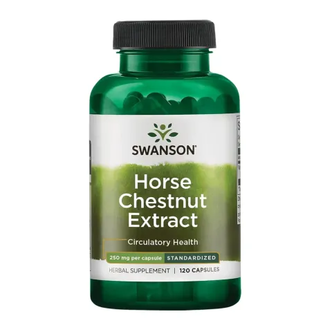 Horse Chestnut Extract 250mg by Swanson is a food supplement in capsules made from Aesculus hippocastanum seed extract, standardised in aescin, a mixture of saponins characteristic of the plant that denotes the developmental quality of the food supplement.