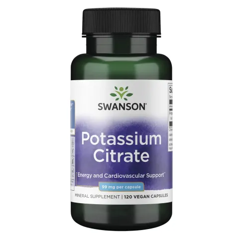 Potassium Citrate 99mg from Swanson is a dietary supplement made with pure potassium citrate in veggie capsules.