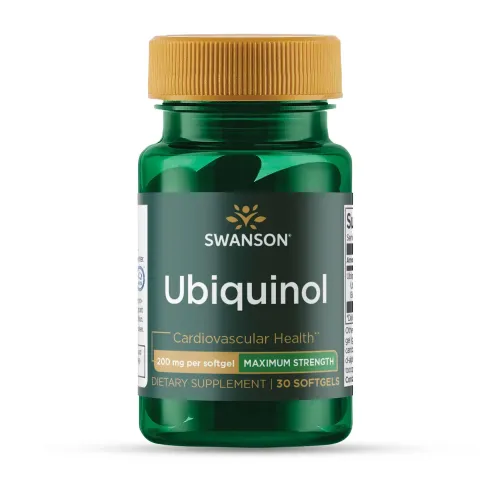 Ubiquinol 200 mg from Swanson is a dietary supplement in softgels made with Kaneka Ubiquinol™.