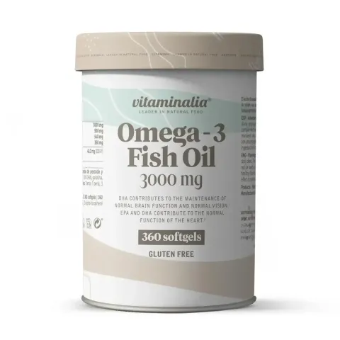 Omega 3 3000mg by Vitaminalia is a food supplement in pearls based on fish oil standardised in Omega 3 fatty acids, 18% EPA (Eicosapentaenoic Acid) and DHA (Docosahexaenoic Acid).