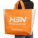Saco HSN com duas pegas. Feito em motivos laranja e logos HSN em branco. Muito leve mas, ao mesmo tempo, muito resistente.