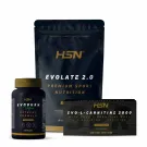 - Inclui Evolate 2.0 (whey isolate CFM em pó), Evoburn (cápsulas vegetais) e Evo L-Carnitine 3000 (ampolas prontas a tomar).