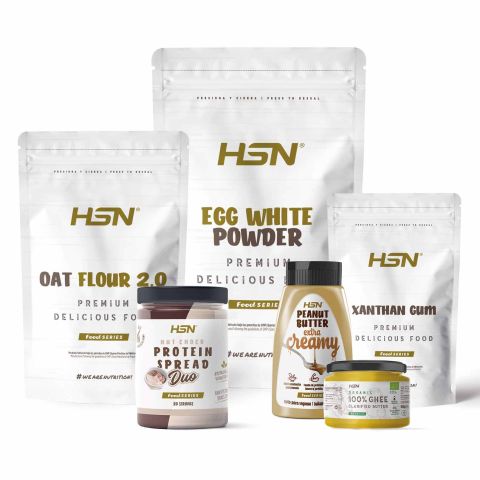 Tem um alto conteúdo em fibra, vitaminas, minerais e gorduras saudáveis. Inlcui EVOegg, uma proteína à base de albúmina de ovo em formato pó ideal para aumentar o conteúdo proteico dos waffles. A goma xantana é um espessante alimentar que melhora a textura e consistência do waffles. O pack inclui ainda creme de caju, ideal para acompanhar o nosso waffle e, ao mesmo tempo, aportar gorduras saudáveis à dieta.