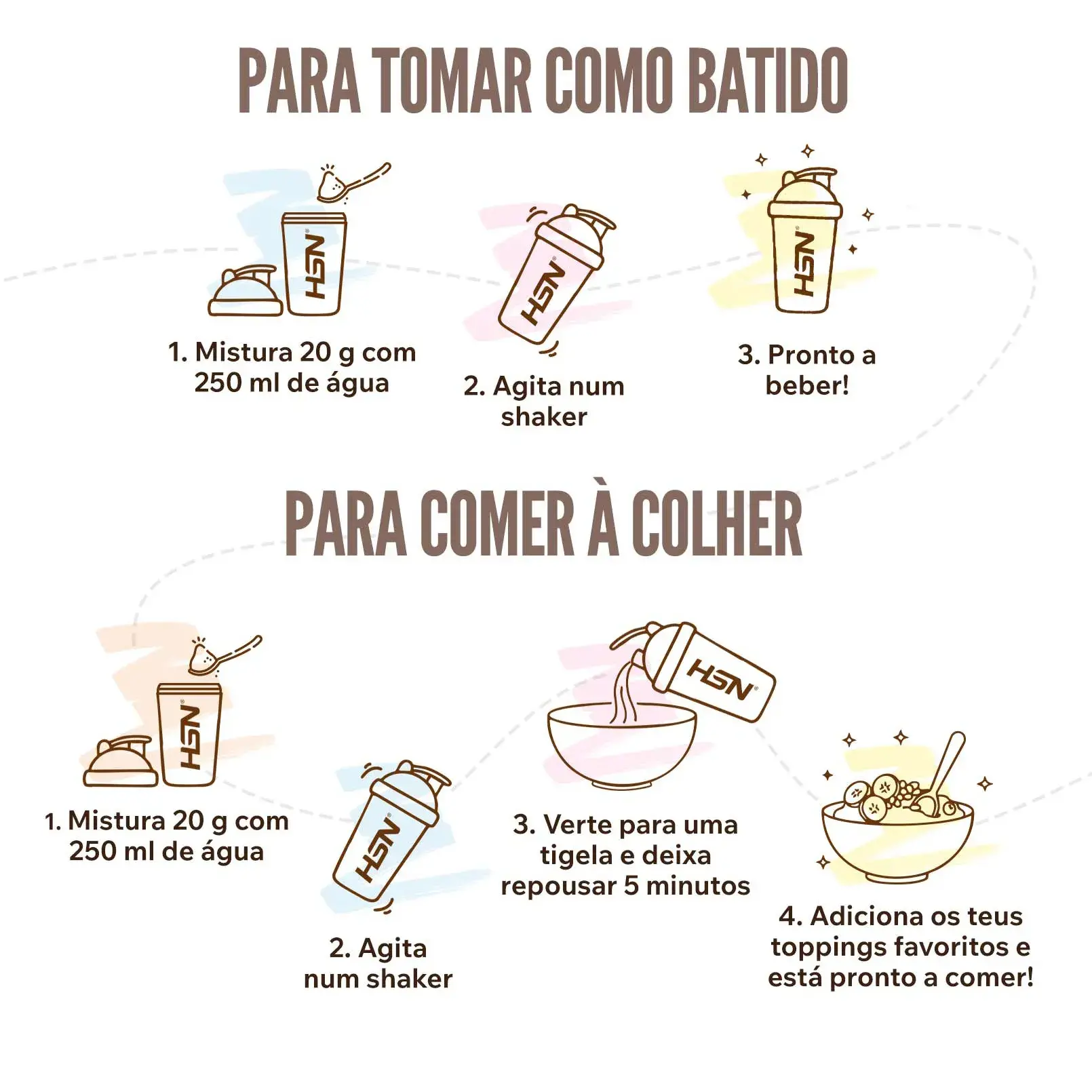 É perfeita para gerar saciedade graças ao seu conteúdo de glucomanano, antes das refeições principais, embora também possa ser usada como uma proteína tradicional, consumida depois do treino. É ideal se estiveres em fase de definição ou redução calórica e precisares de uma fonte de proteínas que te ajude a atingir os teus objetivos diários com saciedade.