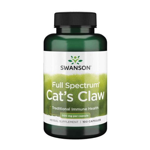 Full Spectrum® Garra de Gato 500mg da Swanson é um suplemento alimentar à base de casca de unha-de-gato (Uncaria tomentosa) com a fómula Full Spectrum® em cápsulas.