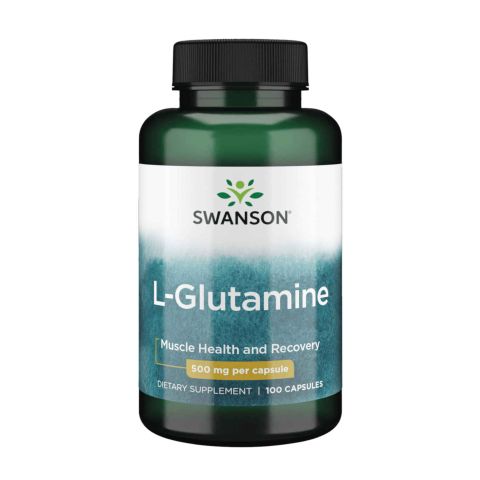 L-Glutamina 500mg da Swanson é um suplemento alimentar à base de L-Glutamina apresentada em cápsulas fáceis de tomar.