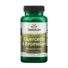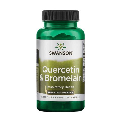 Quercetina & Bromelina da Swanson é um suplemento alimentar à base de bioflavonóide de quercetina e enzima de bromelina derivada do ananás em cápsulas vegetais.