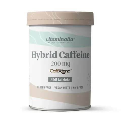 Cafeína Híbrida 200 mg da Vitaminalia é um complemento alimentar em comprimidos (comprimidos, sem revestimento), elaborado a partir da mistura de duas cafeínas com diferentes velocidades de absorção, permitindo assim aproveitar os efeitos nutricionais da cafeína de forma combinada.